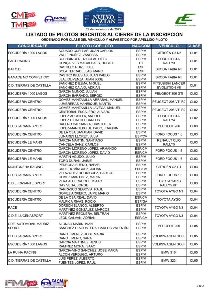 Os adjuntamos la lista de inscritos provisional a falta de organizar y poner los números de competición