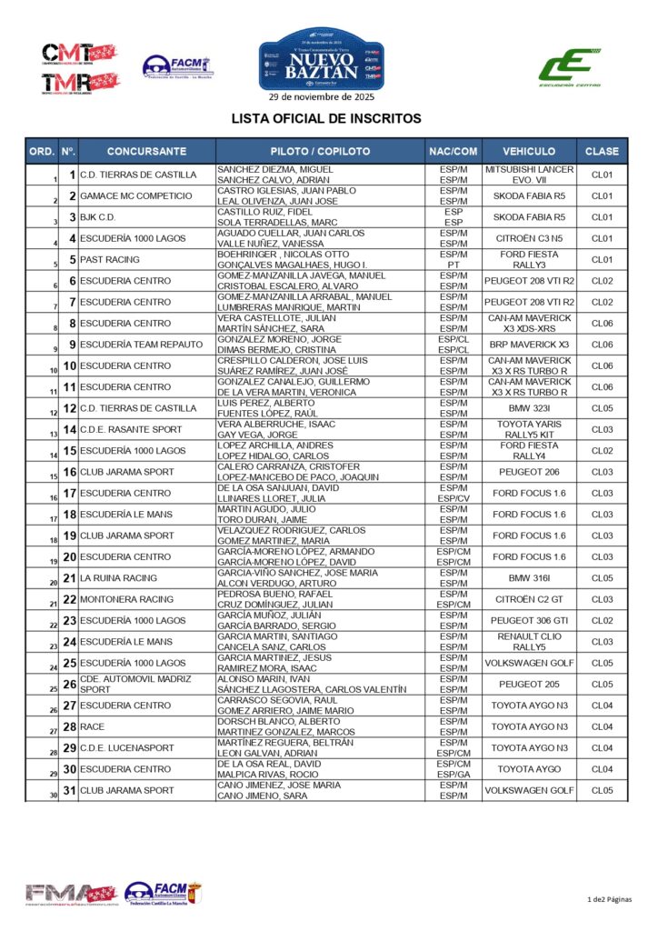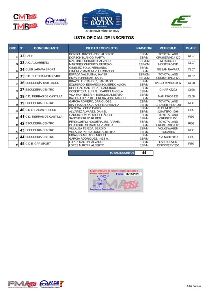 Ya tenemos la lista de inscritos oficial de la prueba aprobada por la FMA Navegación de entradas Entrada anterior 44 Inscritos en el V TCT Nuevo Baztán